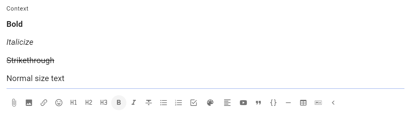 When starting a discussion, poll or writing a comment, you will see the formatting bar under the text.