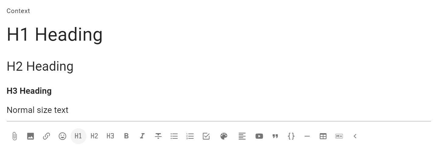 Select the text to mark as a heading and click on the heading format tool.
