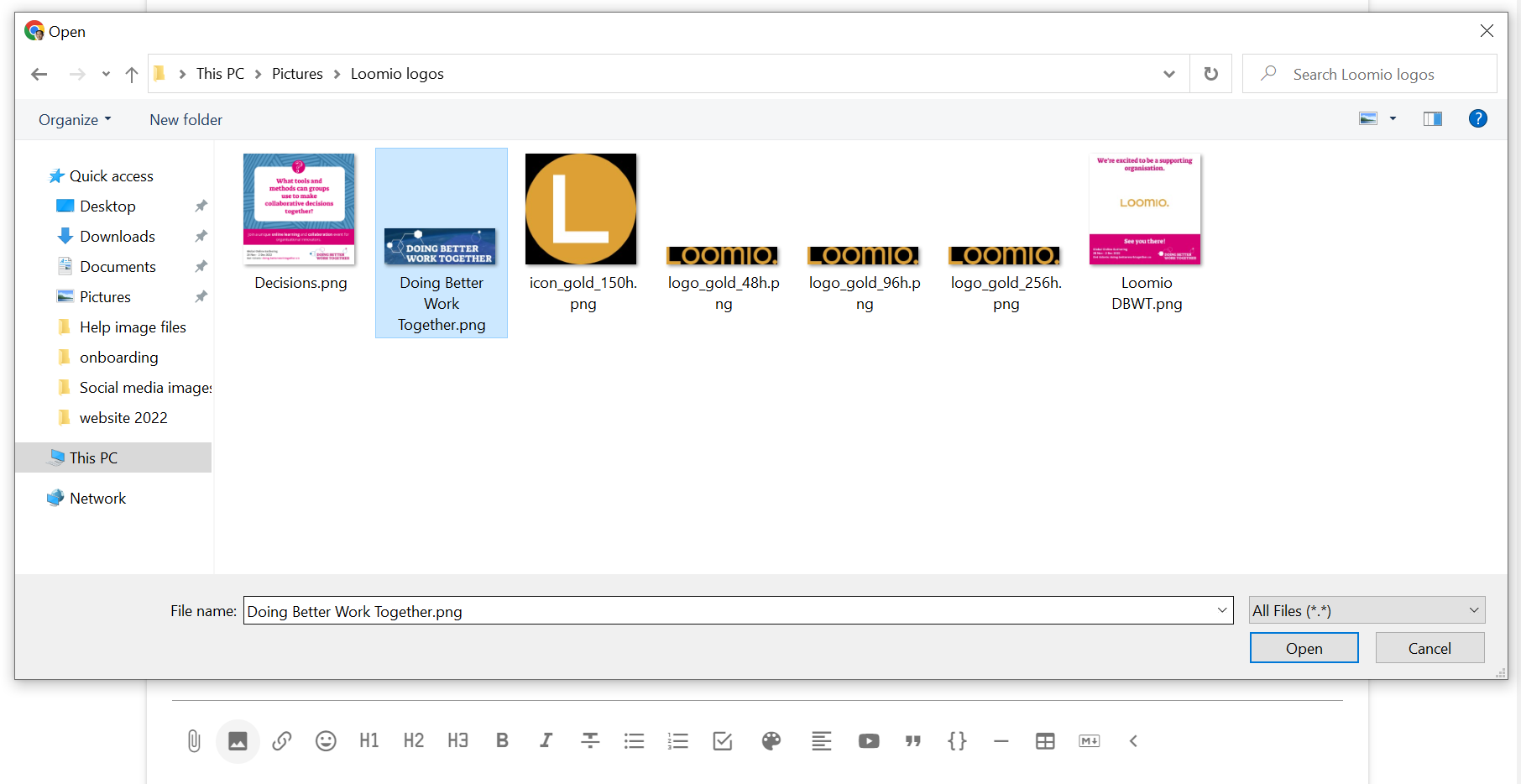 Tip: You can also copy/paste an image directly into Loomio.