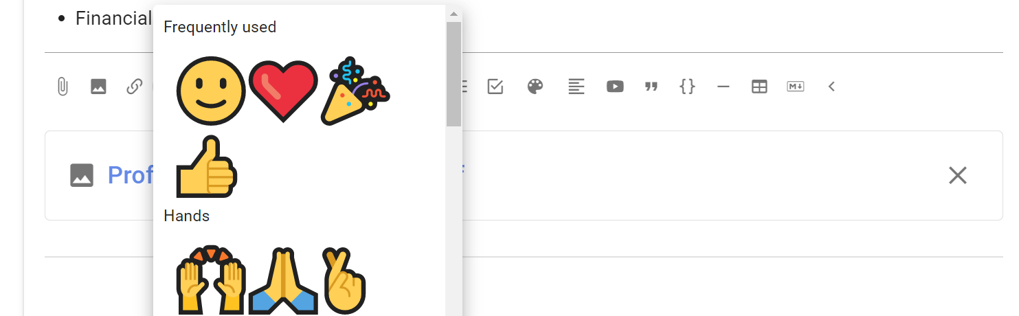 Emojis are great way to lighten the mood and encourage people. Select the emoji you like from the pop up screen.