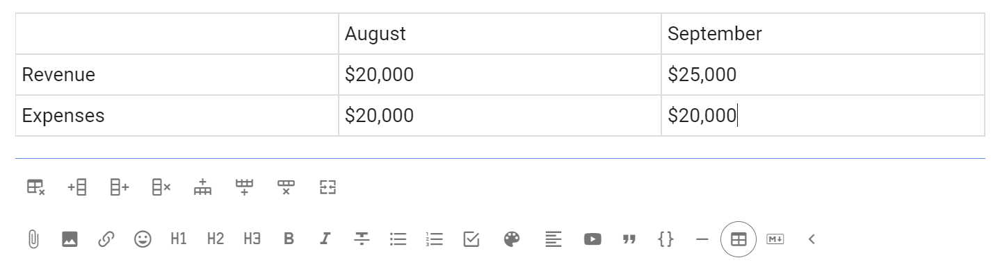 Additional tools are available to add/remove columns and rows.