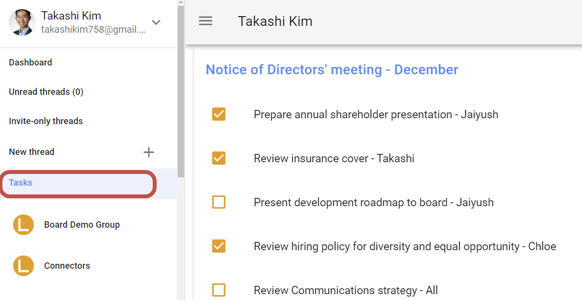 When you have assigned task to someone, or a task is assigned to you, the task will appear on your Tasks page so you can easily keep track of the tasks you’re responsible for.