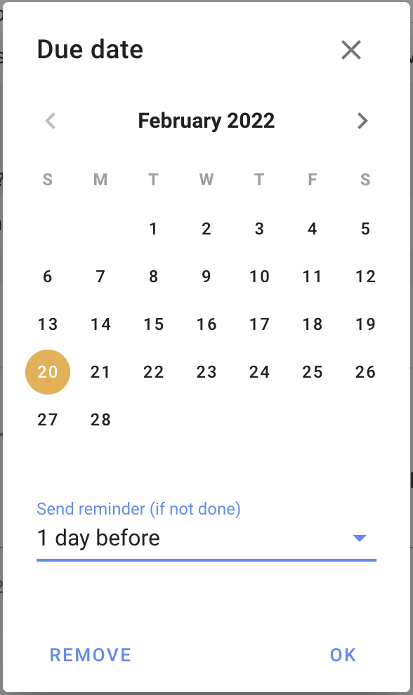 If you click "Add due date", you'll be asked when the task is due, and when to send a reminder to person assigned to the task. The "Task due" notification is sent via email.