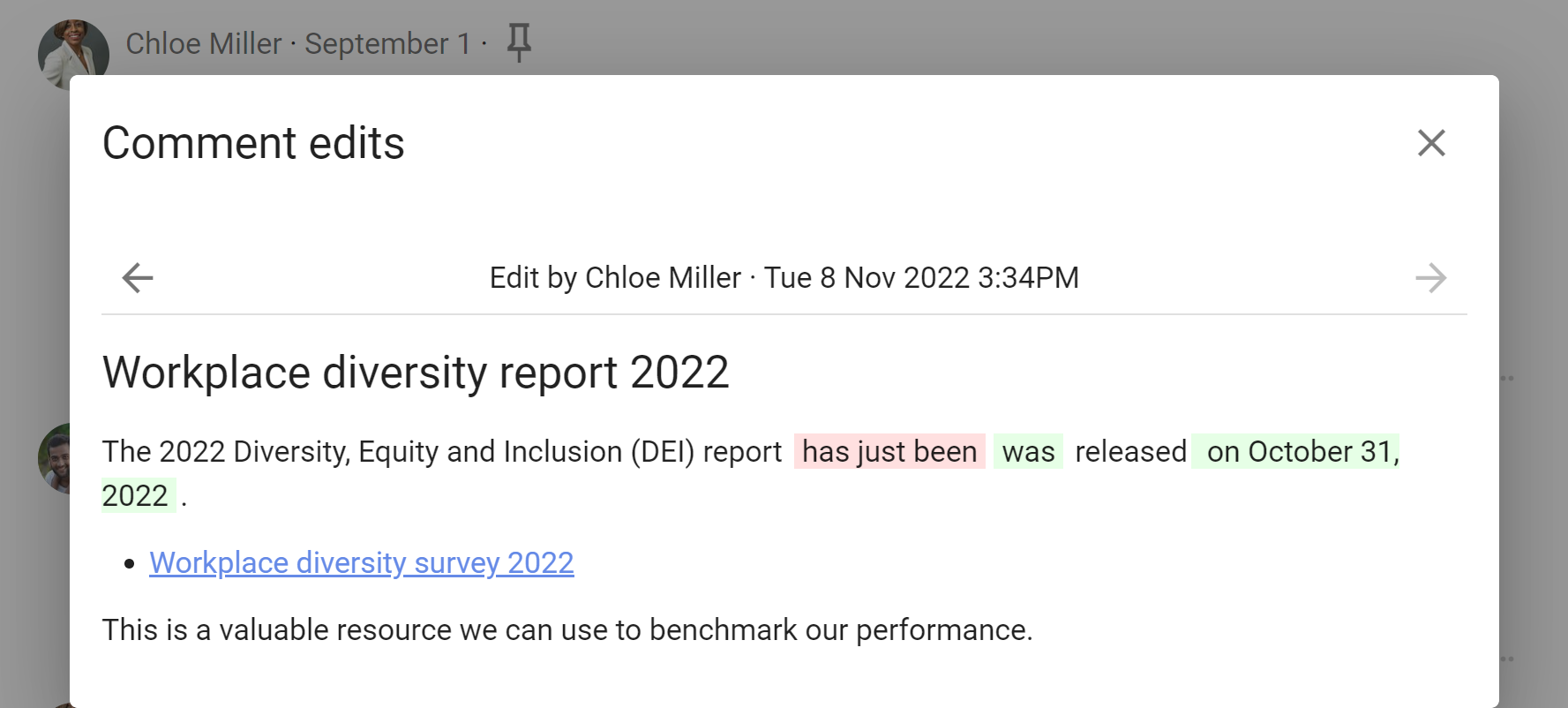 Click on the arrows to see previous edits.