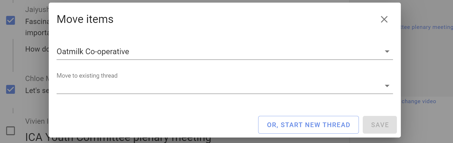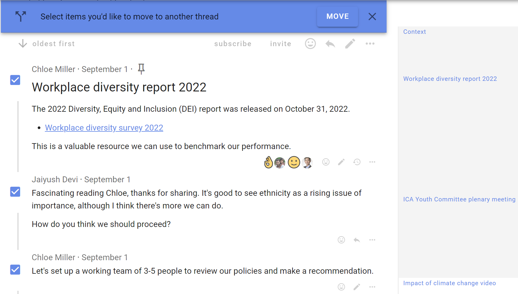 Select the comments you want to move to another discussion.