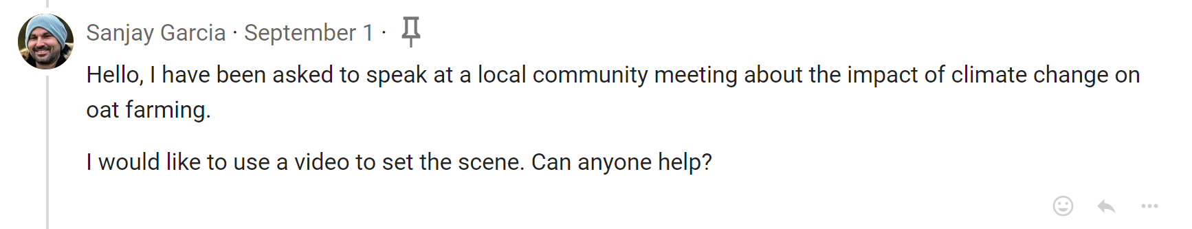 Write the discussion context when starting or editing a discussion. Edit a discussion with the pencil icon.