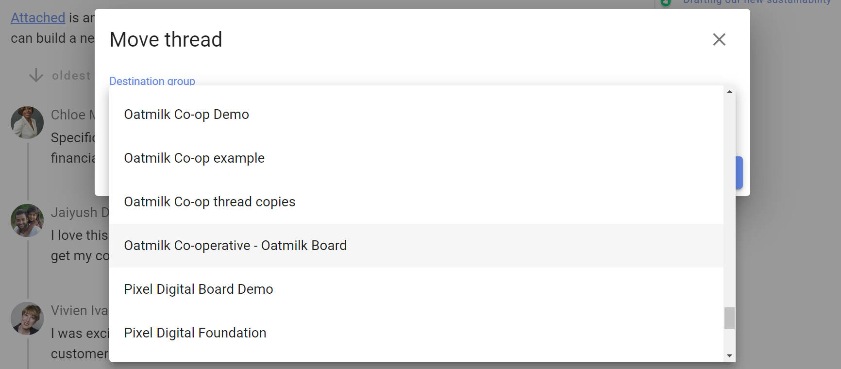 Choose either an existing discussion to move the comments in to, or start a new discussion on a new topic.
