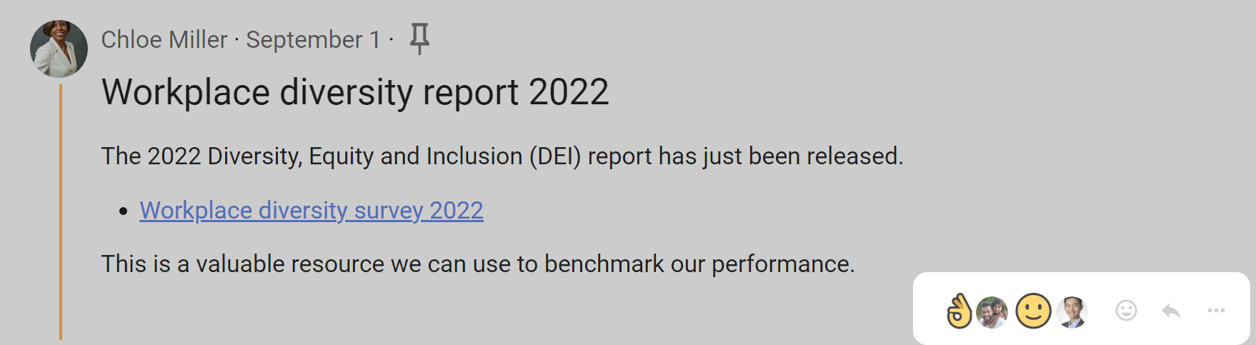 Reacting to a comment is a great way to encourage and acknowledge a comment by letting the comment author know how you feel.