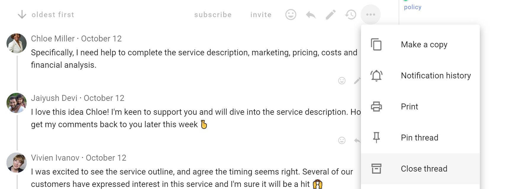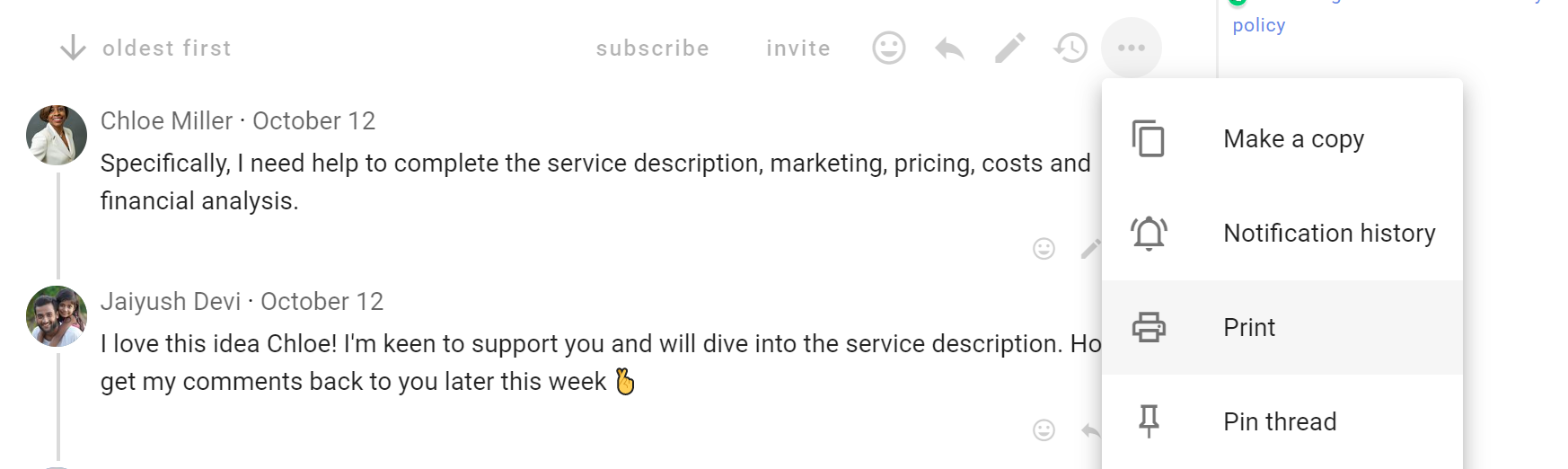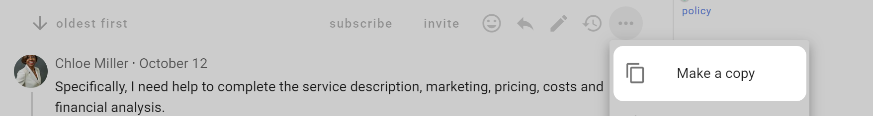 Use Make a copy when you want to start a new discussion based on an existing discussion.