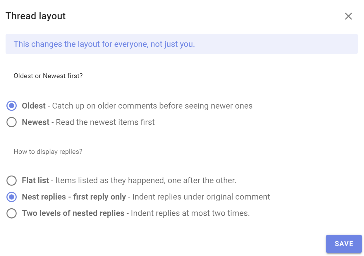 Discussion display options