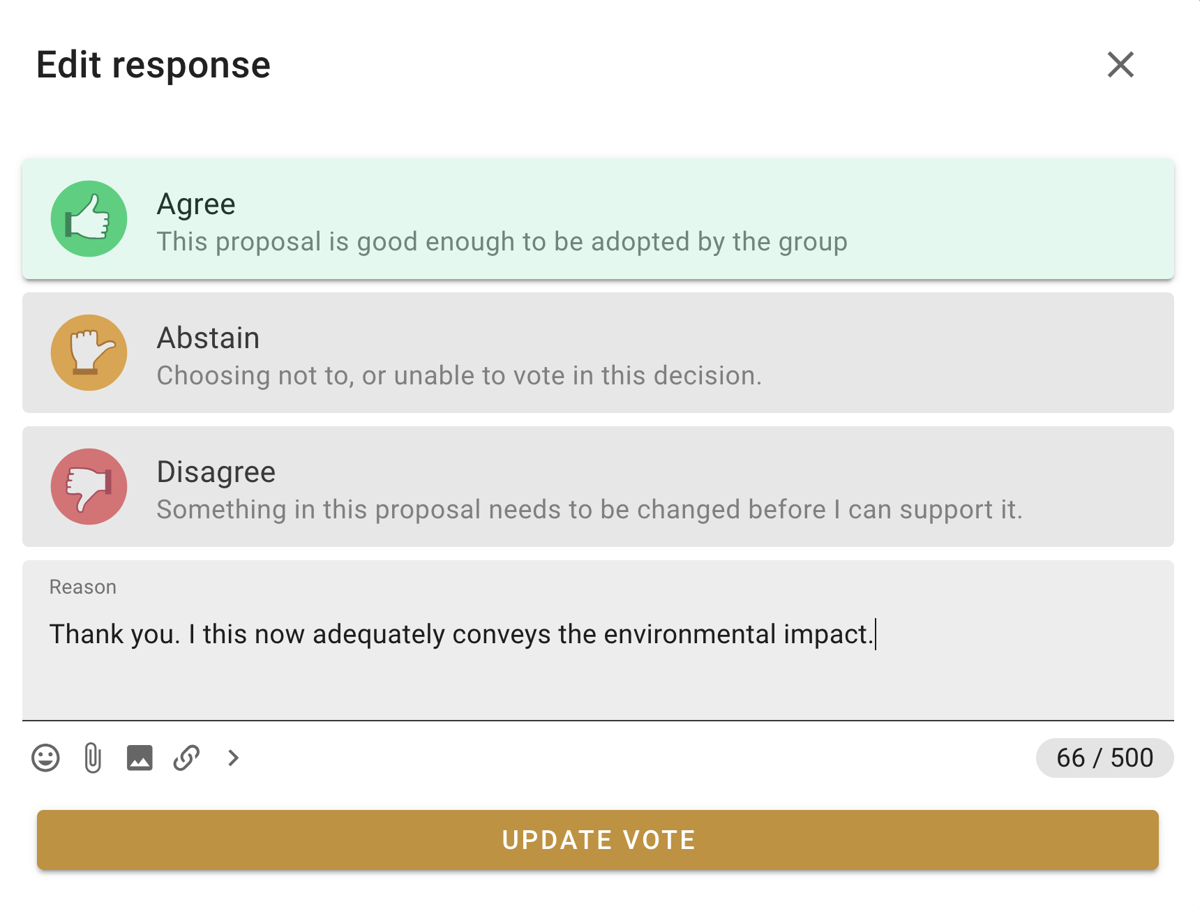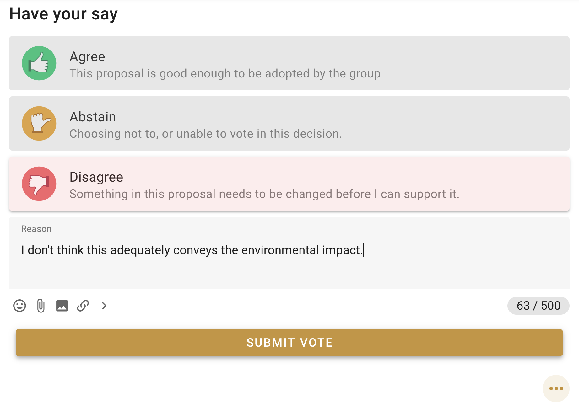 When voting, you can also leave a Reason to say why you have voted this way. This is optional.