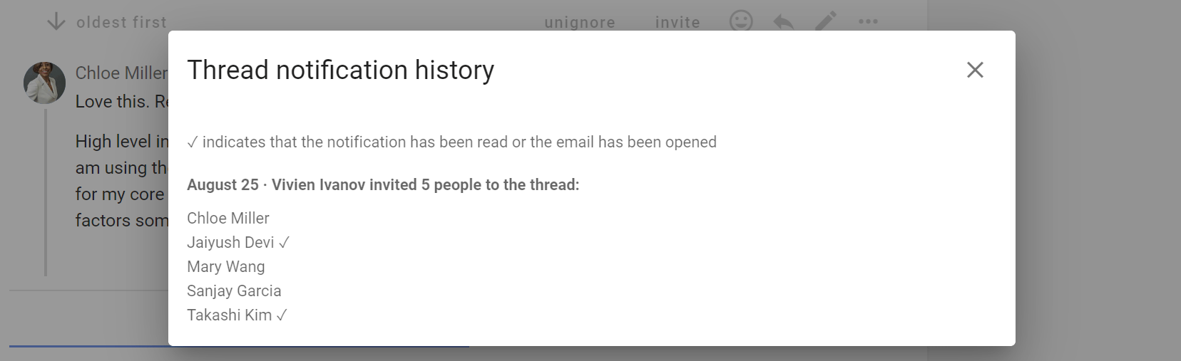 Notified shows who has been notified about the discussion, and if read or email opened.