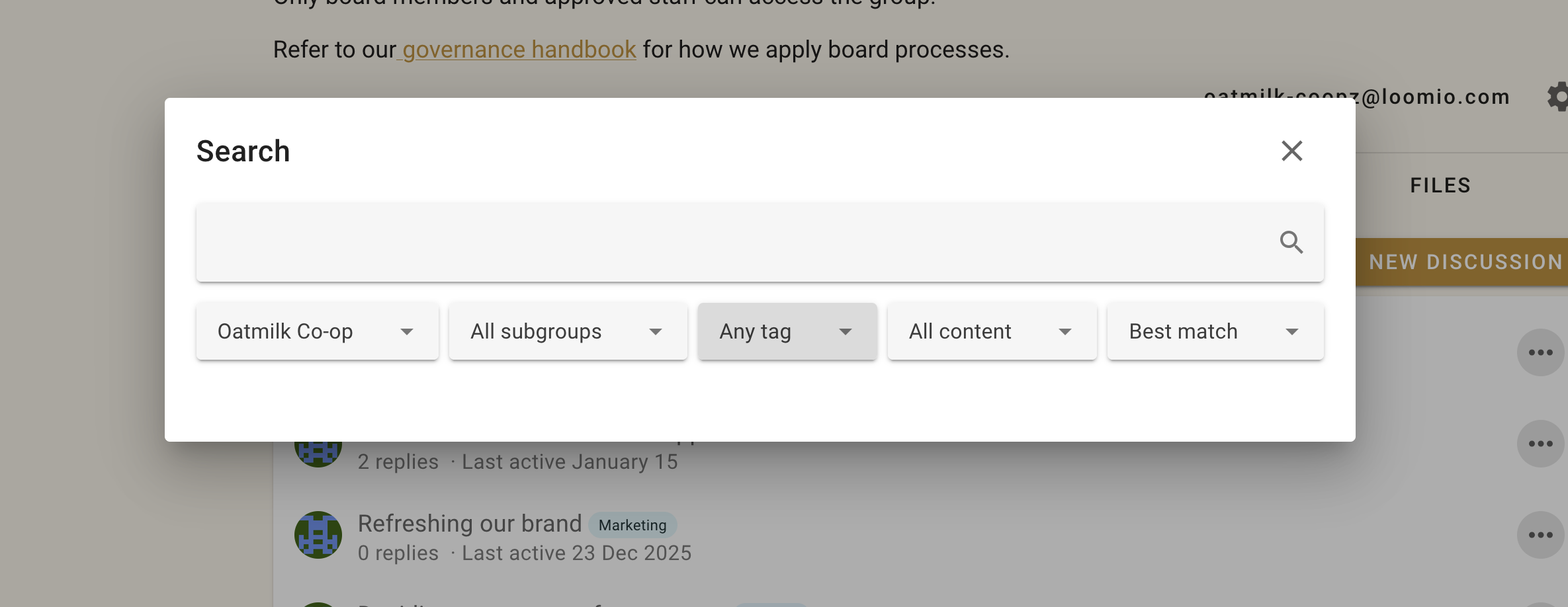 There are several tools included within Loomio to help you find the information you are looking for quickly.